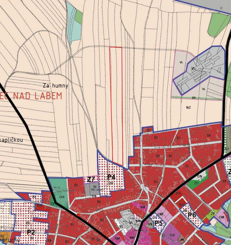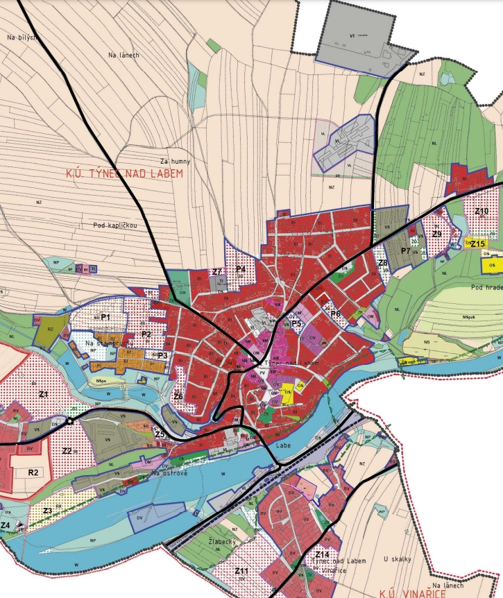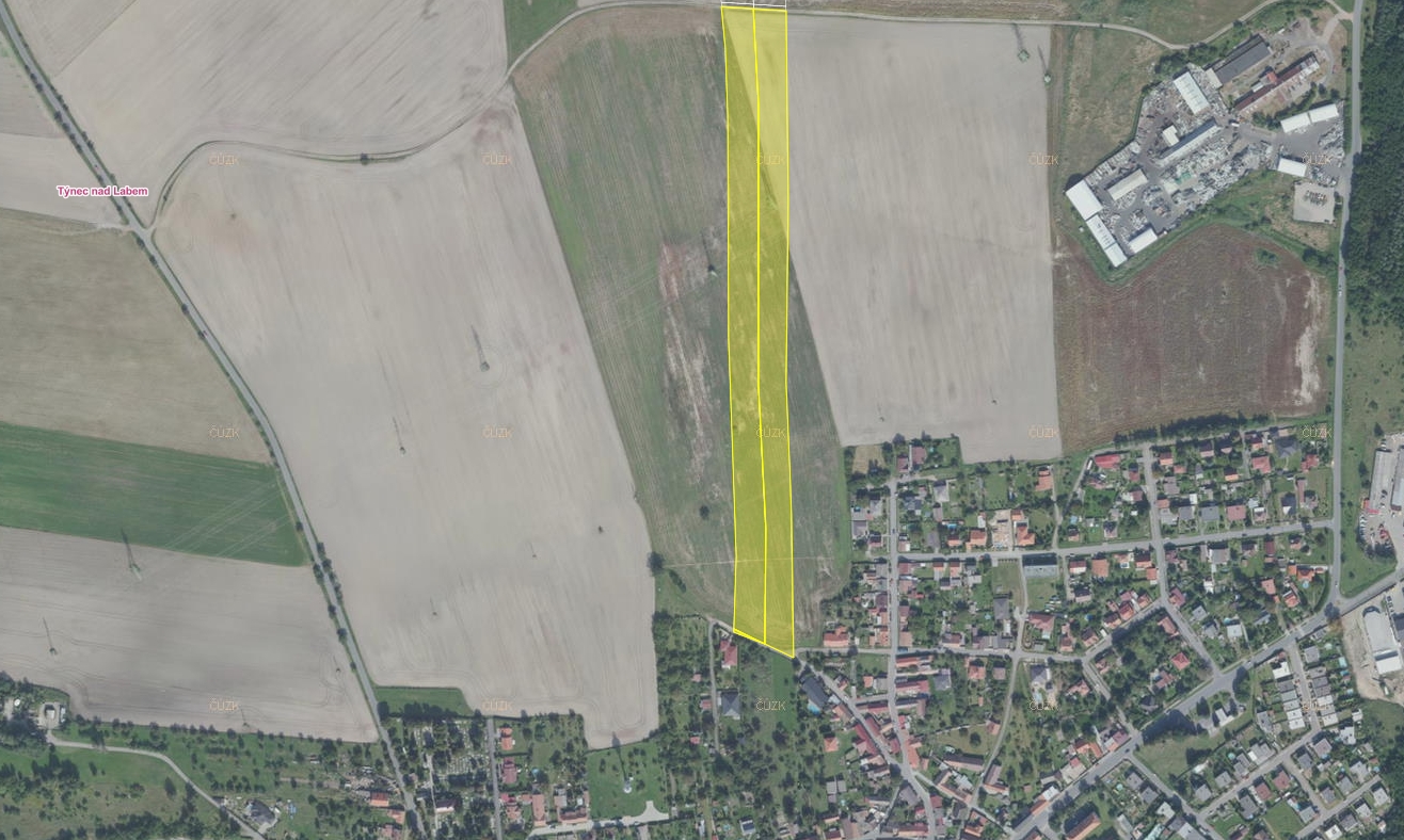 Pozemky se nachází v obci Týnec nad Labem, nyní se nachází dle platného územního plánu v ploše NZ – plochy zemědělské, v současné době vhodných pro zemědělské účely. Vzhledem ke vhodné poloze a blízkosti zastavěného území obce a plochách přestavby lze ale do budoucna uvažovat o změně územního plánu. Jedná se dlouhodobou investici v řádech několika let.