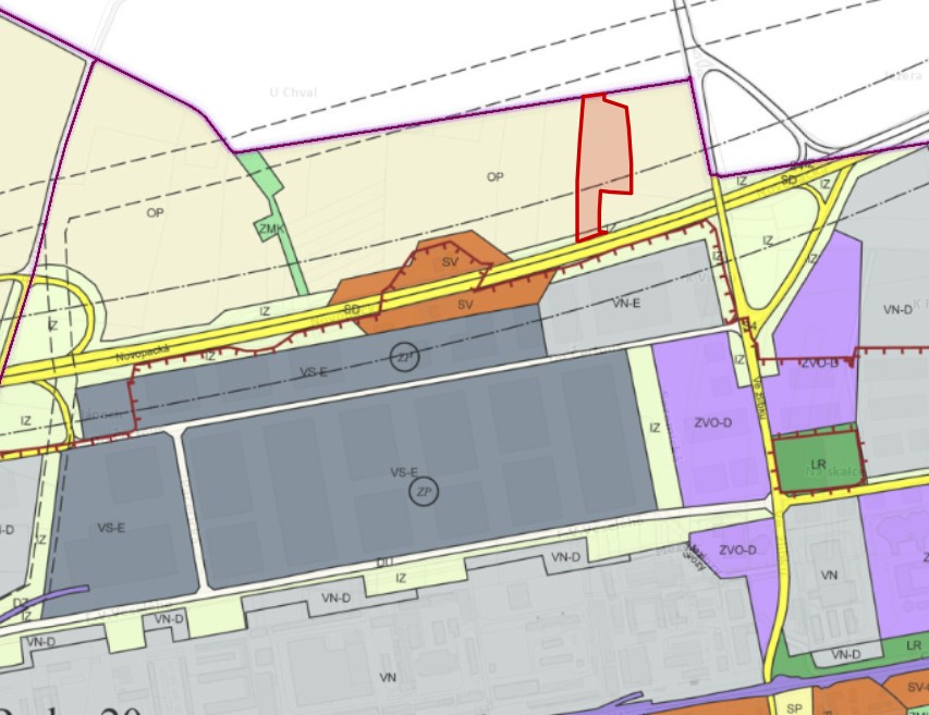 se nalézají v blízkosti průmyslové zástavby (plochy VN – nerušící výroby a služeb) dle platného územního plánu se pozemky nachází v plochách: