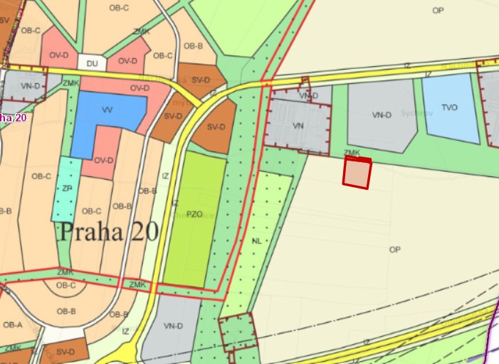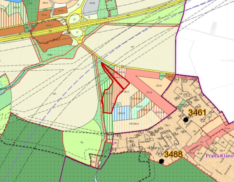 se nachází v blízkosti obytné zástavby městské části Klánovice, dle platného územního plánu se pozemky nachází v několika plochách: