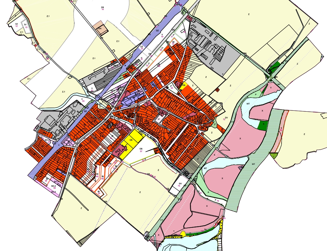 Pozemek se dle platného územního plánu nachází v plochách OS – plochy pro tělovýchovu a sport. Plocha 57 je jedinou a současně největší plochou pro tělovýchovu a sport v ZÚO. Navazuje na