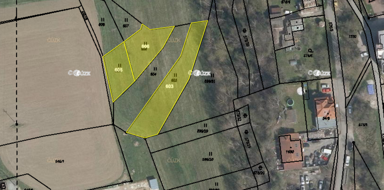 | 603 | 755 m2 | 1/1 | orná půda | 302 |