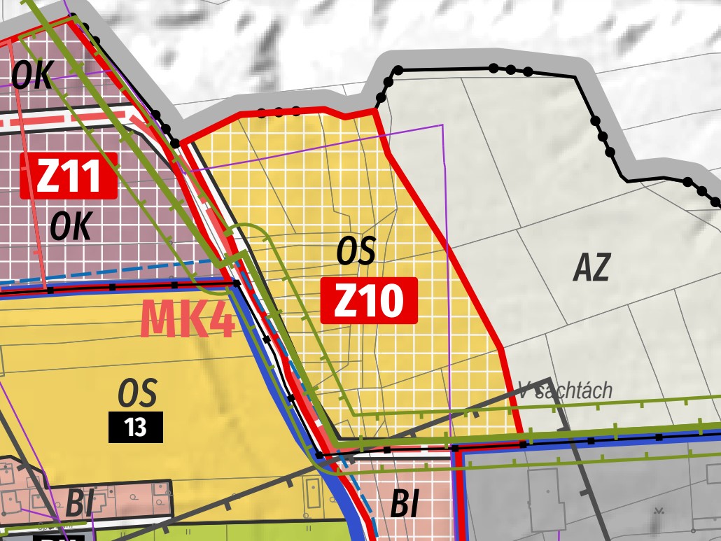 Dle platného územní plánu se pozemky parc. č. 350/1, 352/2, 355/1 a část pozemku 349/2 nachází v zastavitelné ploše Z10 s možností využití jako plochy občanského vybavení s hlavním využitím jako pozemky pro stavby a zařízení občanského vybavení pro sport, rekreaci, přechodné ubytování a veřejné stravování. Ostatní nabízené pozemky na tyto plochy navazují.