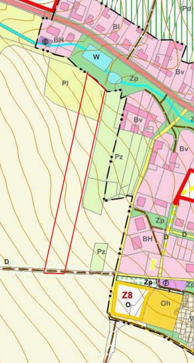 Plocha pozemků se nyní nachází v ploše neurbanizované, vedené pro zemědělské využití. Kombinace orné půdy a luk.