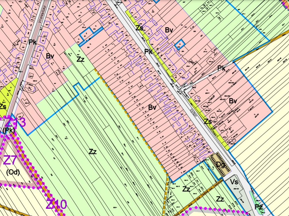 Pozemky jsou v platném územním plánu obce vedeny jako zemědělská plocha – zahrady, sady, vinice. Pozemek 920/1 je částečně v plochách pro bydlení – k tomuto pozemku je nutné připočítat sazbu DPH.