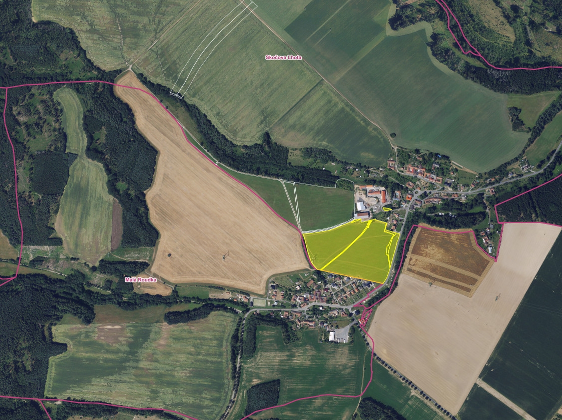 Nabízené pozemky tvoří rozsáhlou a celistvou plochu právě mezi zmíněnými obcemi Malá Roudka a Skočova Lhota. Pozemky jsou napojeny na komunikace. Dle územního plánu (z 10.8.2023) jsou pozemky v současné době majoritně zatříděny v plochách zemědělských – orná půda. Avšak díky lokalitě, umístění pozemků, možnosti napojení na komunikace a proluce mezi obcemi je zde velký potenciál pro změnu územního plánu. Jedná se o exkluzivní investici dlouhodobého charakteru.