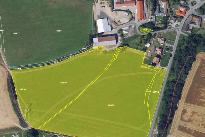 | 555/36 | 25285 m2 | 1/1 | orná půda | 171 |