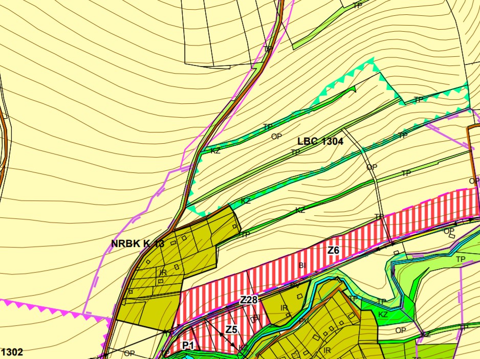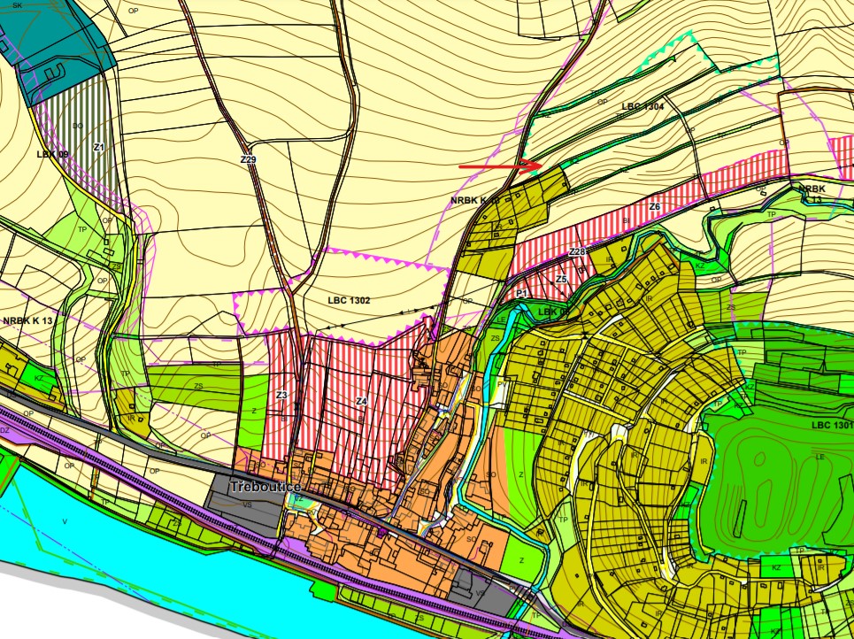Nabízené pozemky se nachází při nejsevernějším okraji vesnice, tedy na severozápad od vrchu Křemín. Podél stávající rekreační zástavby. Dle platného územního plánu z 04/2021 se pozemky nachází v plochách OP – plochy zemědělské – orná půda. Na části pozemků je pak ve výkresové části územního plánu vyznačené lokální biocentrum.