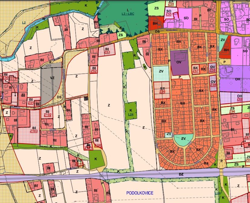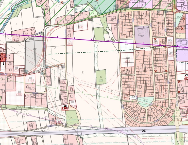 Nabízený pozemek se dle platného územního plánu nachází v plochách zemědělských. Vzhledem k umístění pozemků a lokalitě se jedná o velmi zajímavý investiční záměr. Je možné zažádat o změnu územního plánu na vlastní náklady a to podle §46 nebo §55 Stavebního zákona 183/2006 Sb.