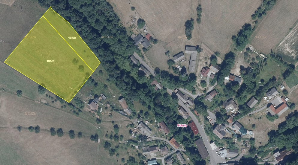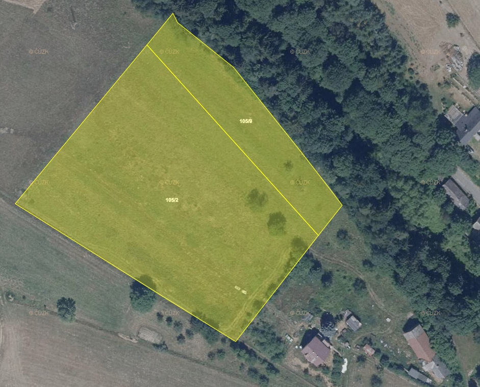 Jedná se o pozemky ve výlučném vlastnictví parc. č. 105/9 a 105/2 zapsaných na LV 423, v současné době vedené jako zemědělské (orná půda a trvalý travní porost).