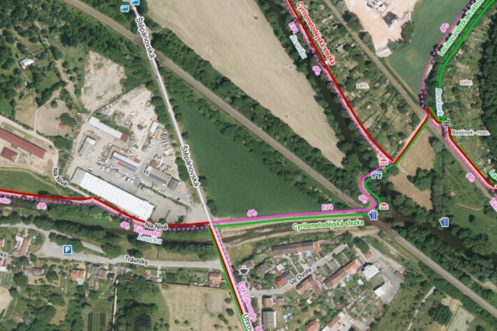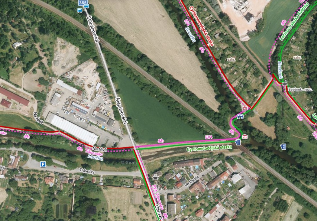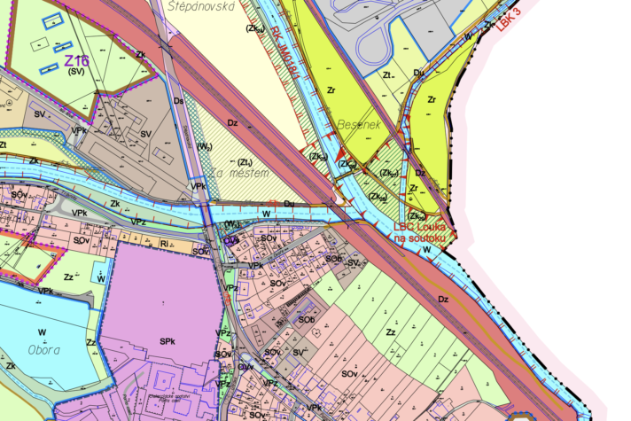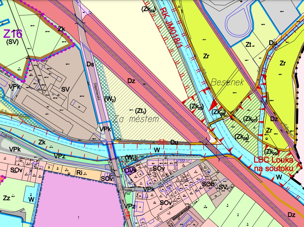 V současné době jsou pozemky dle platného územního plánu vedeny v plochách Zt1 – plocha zemědělská zatravněná a W2 – plocha vodní a vodohospodářská. Na protější straně silnice se nachází průmyslový areál, přes řeku jsou pak plochy pro bydlení. Podél jižní strany pozemku, u řezy vede Cyrilometodějská stezka. Jedná se o dlouhodobou investici v řádu několika let.
