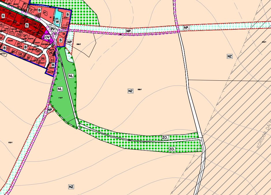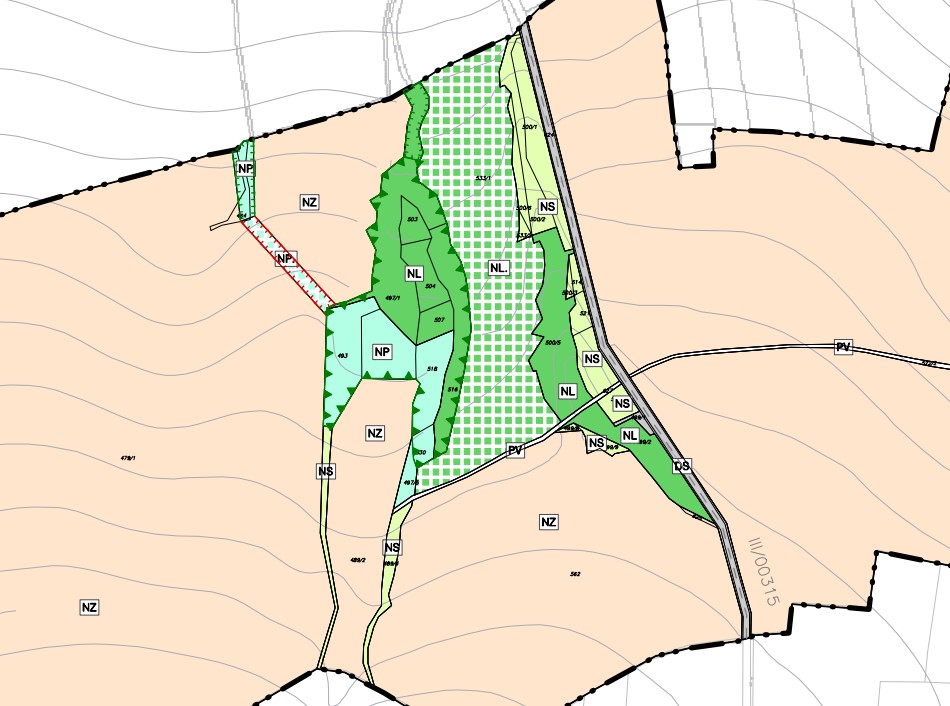Dle územního plánu se pozemky s parc. č. 861 a 984 nachází v plochách zemědělských a pozemky s parc. č. 963 a 971 v plochách lesních.