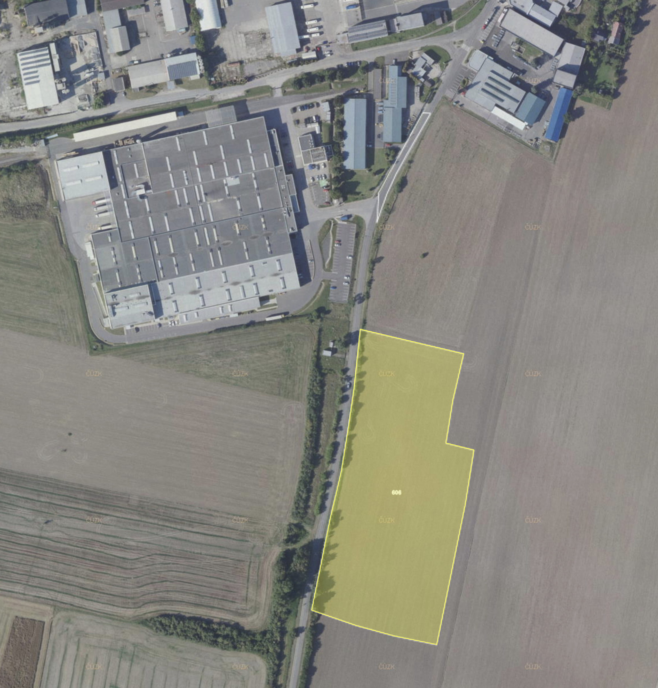 Výhodou tohoto pozemku je vysoká bonita a blízkost průmyslové zóny.